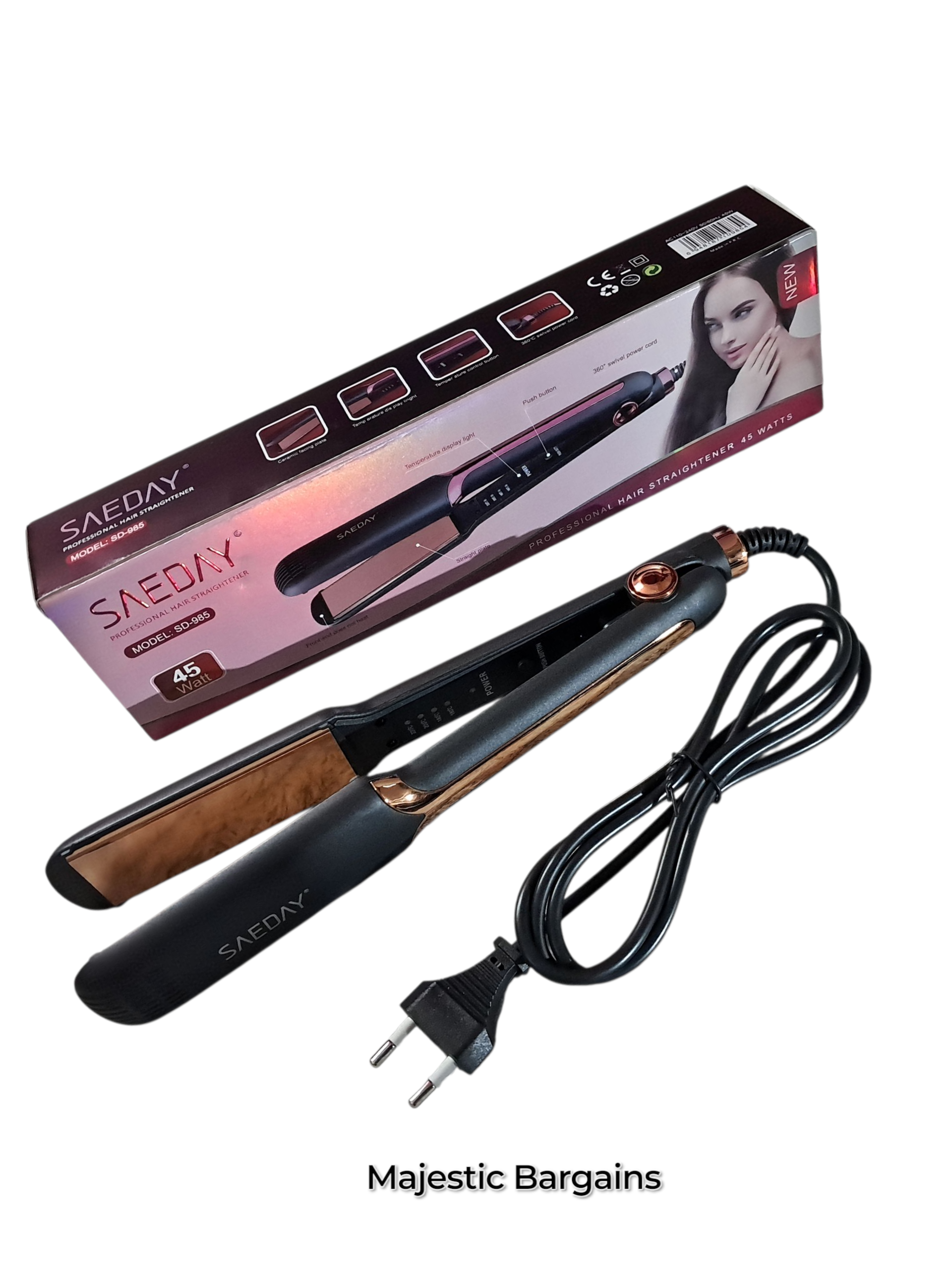 Achieve sleek, smooth styles with the Saeday Hair Straightener 45W, only at Majestic Bargains!