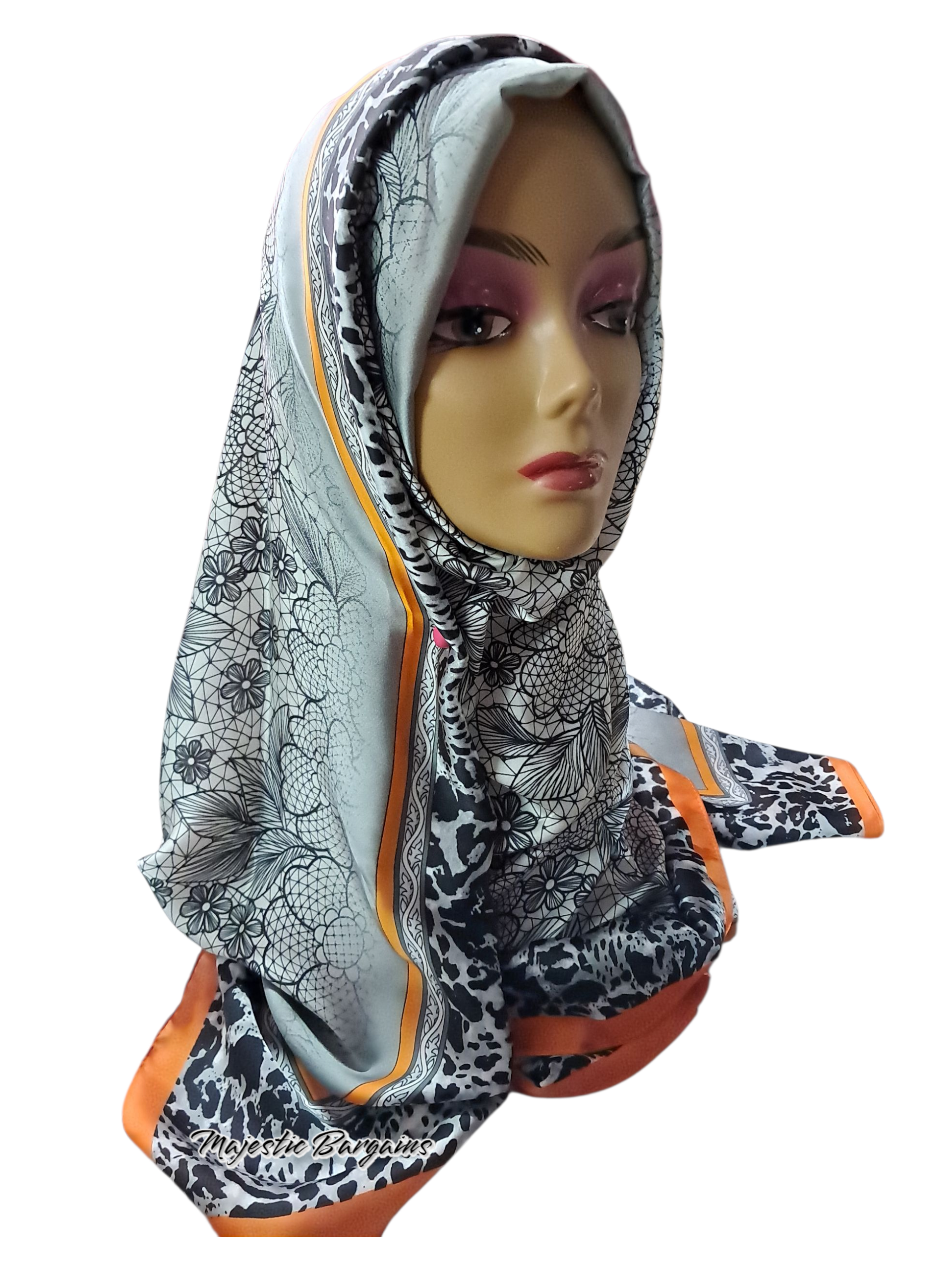 Elevate your style with Majestic Bargains’ Turkish printed silk long scarves.